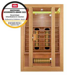 Artsauna Infrarotkabine Wärmekabine Helsinki 150 mit Dual-Technologie & Hemlockholz Kundenbewertung: 4,54 von 5 Sternen nur 1.699.–* nur 1699,–€ Sternchen Fußnote, Details am Seitenende 0% Finanzierung 0% Finanzierung möglich In den Warenkorb