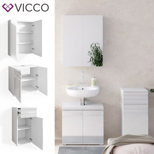 Vicco Badmöbelset Ilias Weiß Hochglanz modern Badezimmer Schrank Badschrank Waschtischunterschrank Spiegelschrank Midischrank Schranktür Schrankschublade Schrankfach Ablage Aufbewahrung nur 277.90* nur 277,90€ Sternchen Fußnote, Details am Seitenende Zum Artikel
