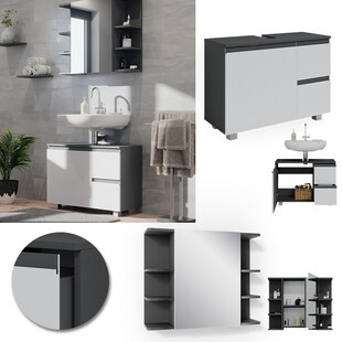 Vicco Badmöbelset J-shape Anthrazit Weiß modern Badezimmer Schrank Badschrank Waschtischunterschrank Spiegelschrank Schranktür Schrankschublade Aufbewahrung nur 192.90* nur 192,90€ Sternchen Fußnote, Details am Seitenende Zum Artikel