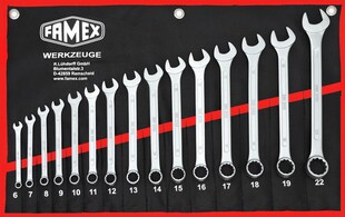 FAMEX 10349-15 Ringmaulschlüssel in Rolltasche 15-tlg. Kundenbewertung: 5 von 5 Sternen -17 % Sie Sparen 17 Prozent, UVP 27.99 UVP : 27,99€ 22.99* Aktueller Preis: 22,99€ Sternchen Fußnote, Details am Seitenende In den Warenkorb