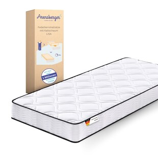 Arensberger JANA Federkernmatratze - 19cm Höhe - Matratze mit Schaumstoff Schicht - H2 H3 Mittelfest – 7 Zonen - Federkern - Liegekomfort 90x200cm Kundenbewertung: 5 von 5 Sternen -33 % Sie Sparen 33 Prozent, UVP 119.90 UVP : 119,90€ ab 79.99* ab 79,99€ Sternchen Fußnote, Details am Seitenende Zum Artikel