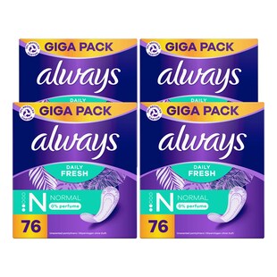 Always Slipeinlagen GigaPack Normal 76 Stück, 4er Pack Kundenbewertung: 5 von 5 Sternen nur 15.40* nur 15,40€ Sternchen Fußnote, Details am Seitenende In den Warenkorb
