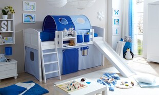 Halbhohes Bett PINO, mit Rutsche und Textilset "Space Shuttle", Ausf. Kiefer massiv versch. Farben -31 % Sie Sparen 31 Prozent, UVP 764.– UVP : 764,–€ ab 521.–* ab 521,–€ Sternchen Fußnote, Details am Seitenende Zum Artikel
