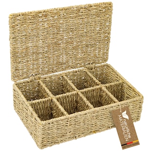 HMF Teebox für Teebeutel geflochten aus Seegras, Tee Aufbewahrungsbox mit 8 großen Fächern, 33 x 21 x 10 cm -37 % Sie Sparen 37 Prozent, UVP 28.99 UVP : 28,99€ 17.98* Aktueller Preis: 17,98€ Sternchen Fußnote, Details am Seitenende In den Warenkorb