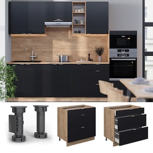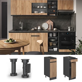 Küchen Unterschrank 80 cm CREMONA Eiche + Schwarz Küche Küchenzeile Küchenblock nur 159.99* nur 159,99€ Sternchen Fußnote, Details am Seitenende Zum Artikel