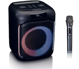 Lenco Karaoke-System mit Bluetooth®, wiederaufladbarem Akku, drahtlosem Karaoke-Mikrofon und Disco-LED-Beleuchtung Weiß -26 % Sie Sparen 26 Prozent, UVP 79.99 UVP : 79,99€ 58.99* Aktueller Preis: 58,99€ Sternchen Fußnote, Details am Seitenende In den Warenkorb