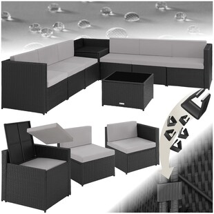 tectake® Rattan Lounge, für 5 Personen, Dicke der Polster 8 cm, inklusive großer Aufbewahrungsbox -56 % Sie Sparen 56 Prozent, UVP 1.099.– UVP : 1099,–€ 474.99* Aktueller Preis: 474,99€ Sternchen Fußnote, Details am Seitenende Zum Artikel