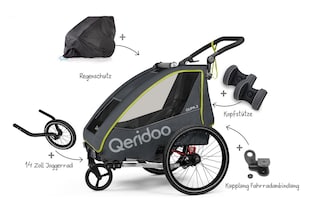 • Flexibilität bei der Kinderanzahl: Egal, ob du einen Qeridoo Fahrradanhänger für ein oder zwei Kinder benötigst, die Modelle wie der Qeridoo Sportrex 1 und 2, Kidgoo 1 und 2 sowie Qupa 1 und 2 bieten dir die perfekte Lösung als Ein- oder Zweisitzer.