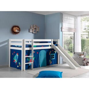 Halbhohes Bett PINO, mit Rutsche und Textilset "Space Shuttle", Ausf. Kiefer massiv versch. Farben -21 % Sie Sparen 21 Prozent, UVP 764.– UVP : 764,–€ ab 603.–* ab 603,–€ Sternchen Fußnote, Details am Seitenende Zum Artikel
