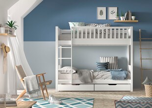 SCOTT Etagenbett mit 2 Liegeflächen 90 x 200 cm, inkl. Rolllattenrost, Leiter u. 2 kleinen Bettschubladen, Ausf. Kiefer weiß lackiert -31 % Sie Sparen 31 Prozent, UVP 1.228.– UVP : 1228,–€ ab 838.–* ab 838,–€ Sternchen Fußnote, Details am Seitenende +30€ Filialgutschein Kampagnen Artikel+30€ Filialgutschein Zum Artikel