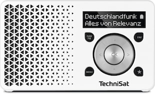 TechniSat DIGITRADIO 1 | Tragbares DAB+ & UKW-Radio, Akku weiß/silber -14 % Sie Sparen 14 Prozent, UVP 69.– UVP : 69,–€ 59.–* Aktueller Preis: 59,–€ Sternchen Fußnote, Details am Seitenende Zum Artikel
