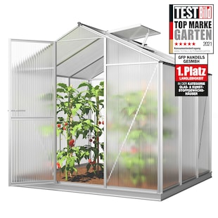 GFP Gewächshaus Aluminium-Rahmen, 8 mm Doppelstegplatten, mit Fundamentrahmen & automatischem Fensteröffner 225 x 133 x 213 cm ab 869.–* ab 869,–€ Sternchen Fußnote, Details am Seitenende Zum Artikel