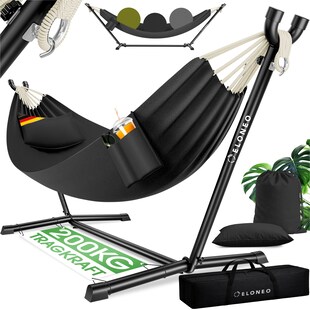 ELONEO Hängematte mit Gestell für 2 Personen, 200 kg Belastbarkeit, höhenverstellbares Hängemattengestell Outdoor und Indoor Hammock inklusive Kissen, Tragetasche und Beutel, Anthrazit nur 69.99* nur 69,99€ Sternchen Fußnote, Details am Seitenende Zum Artikel