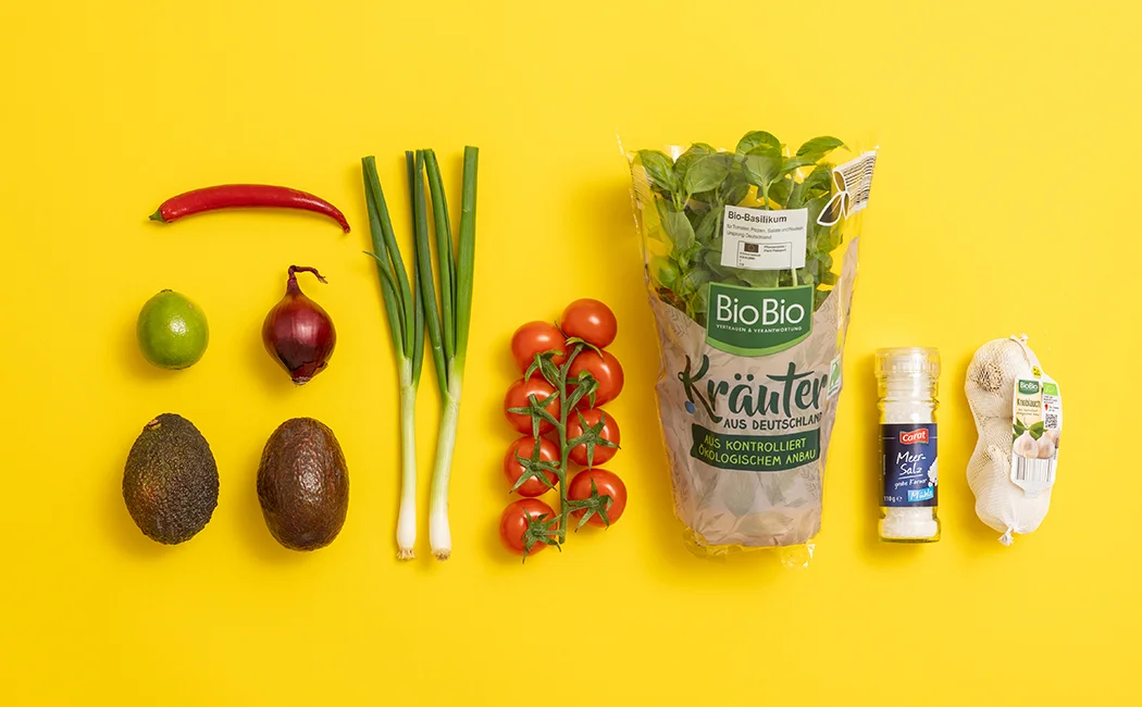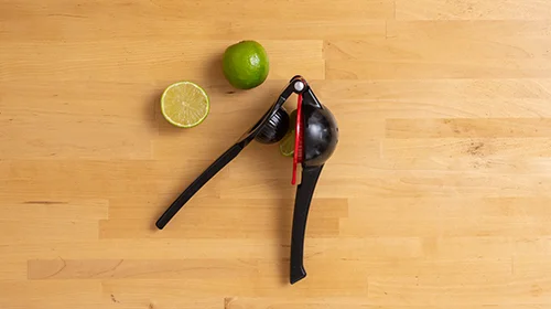 2. Limette auspressen und über alle vorbereiteten Zutaten geben.