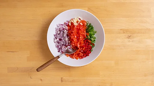 5. Die gegrillten Avocados mit der Salsa toppen.