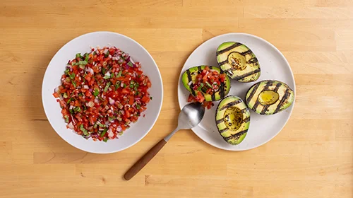 Als Grill-Beilage oder zum Sattessen gelingt diese cremig-würzige Avocado vom Grill leicht und wird mit pikanter Tomaten-Salsa getoppt.