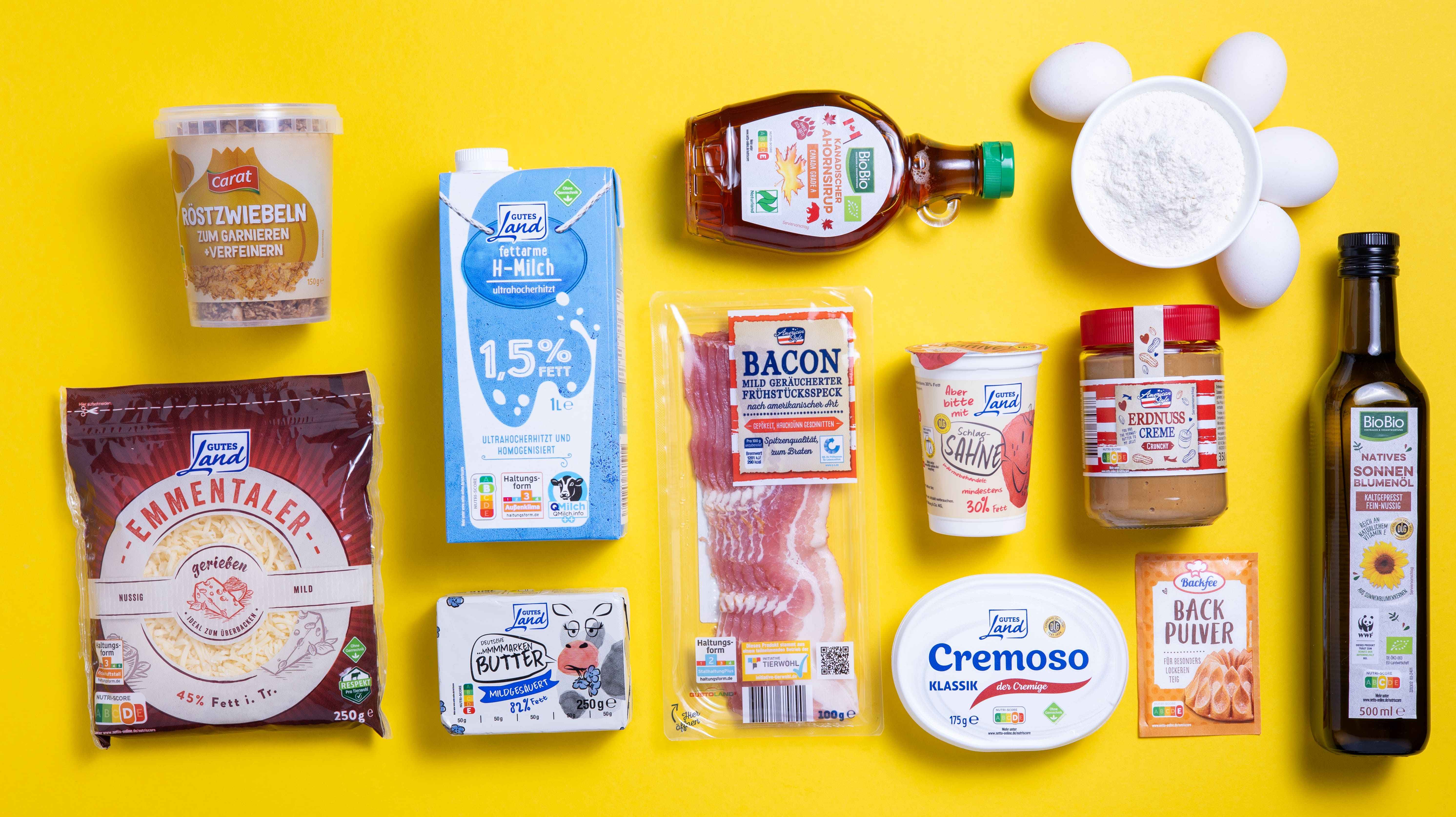 Den Backofen auf 180 °C Umluft vorheizen. Den Bacon auf einem Backblech mit Backpapier verteilen, mit einem weiteren Stück Backpapier abdecken und mit einem zweiten Backblech beschweren. Etwa 20 Minuten knusprig backen, dann auf Küchenpapier abtropfen lassen.