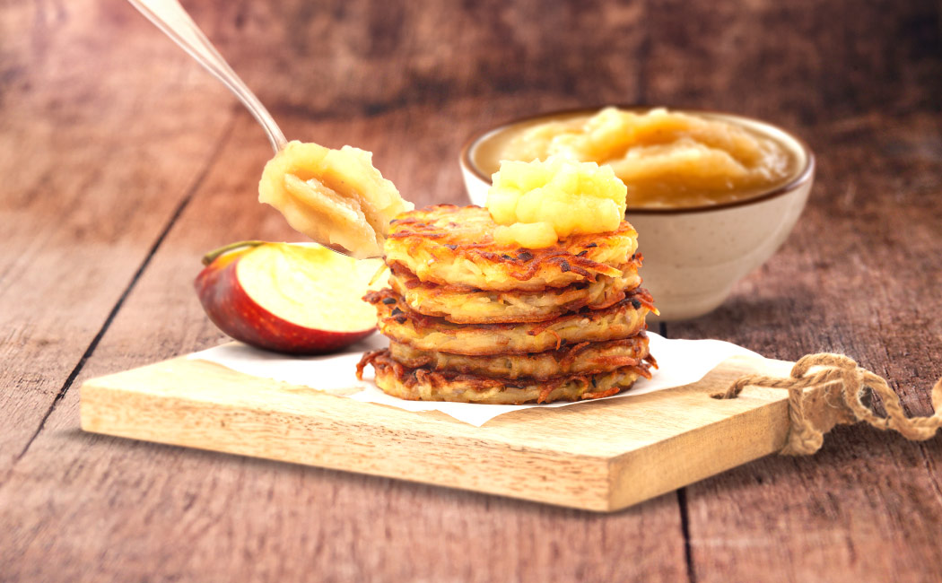 Die Reibekuchen mit Apfelmus servieren.