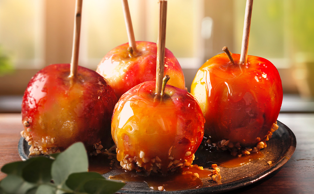Die Glasur in einen hohen Behälter füllen und die Äpfel nacheinander eintunken und überglänzen.