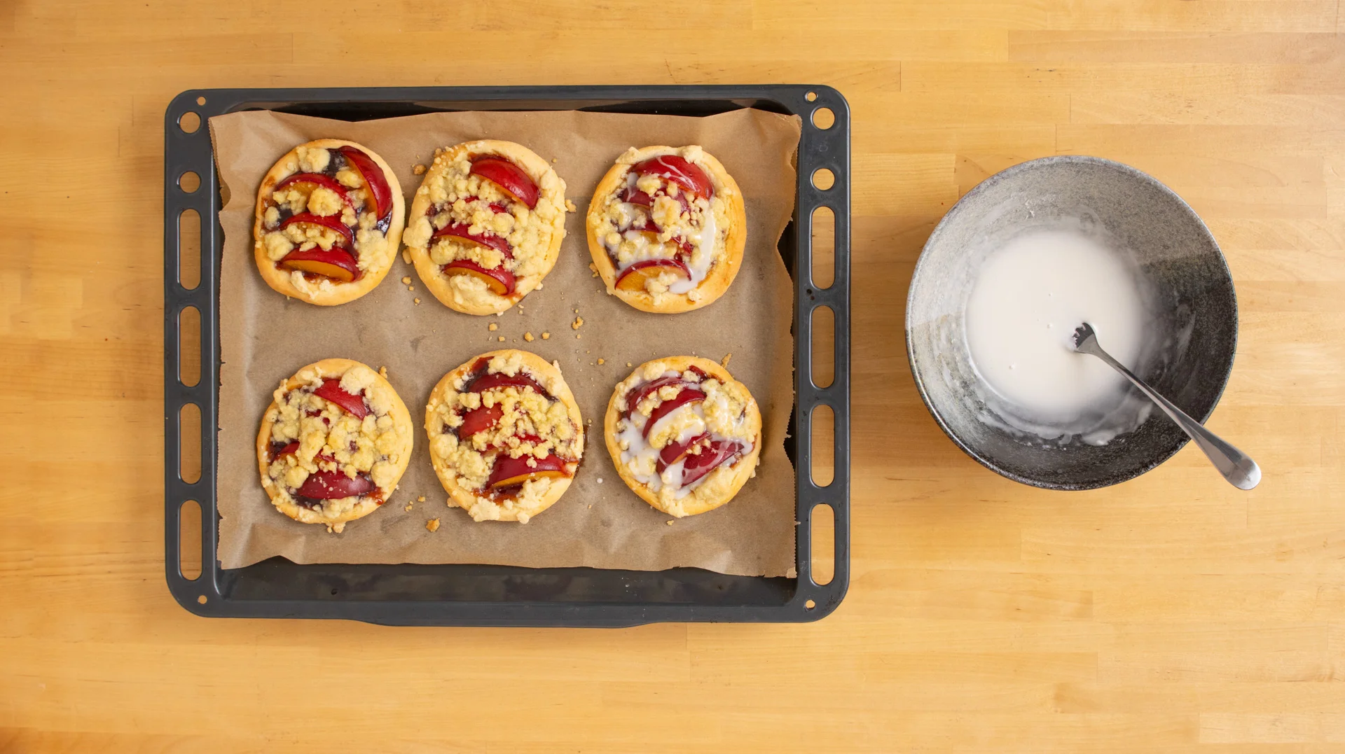 Himmlische Pflaumen-Häppchen mit knusprigen Streuseln, fruchtig und süß, aus einem Quarkteig gebacken, warten darauf, vernascht zu werden.