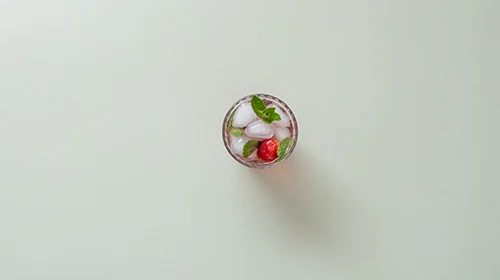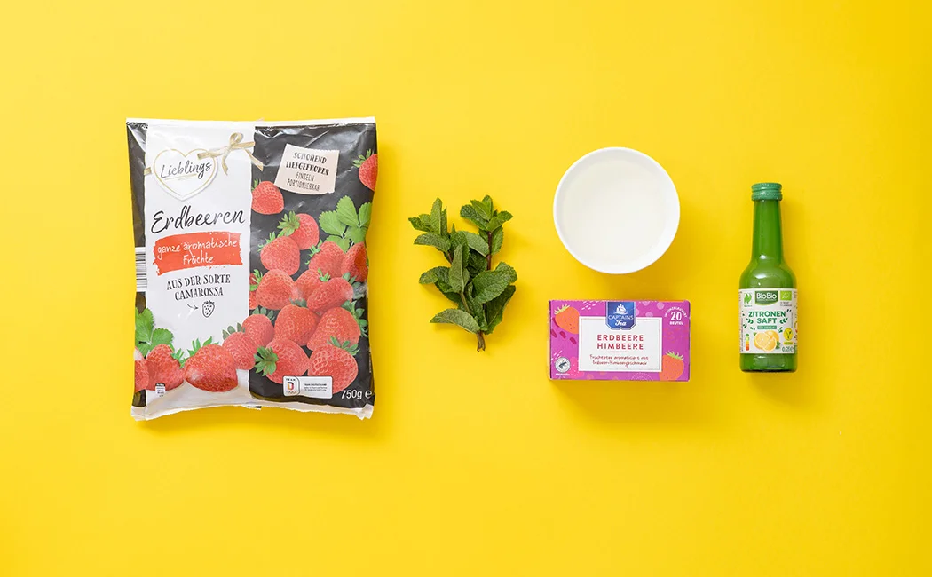 Erfrischender, alkoholfreier Cocktail mit fruchtigen Erdbeeren und Früchte-Tee-Mischung sowie sprudelndem Mineralwasser.