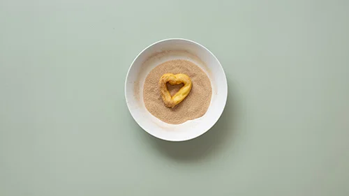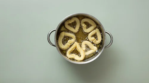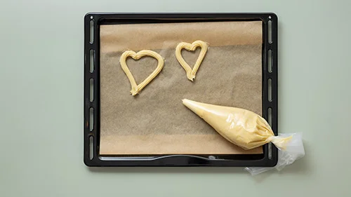 Auf ein Backblech mit Backpapier Churros in Herzform dressieren.