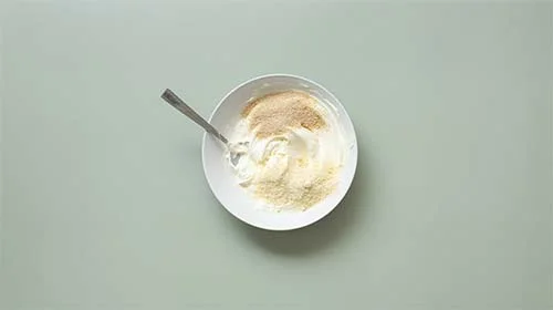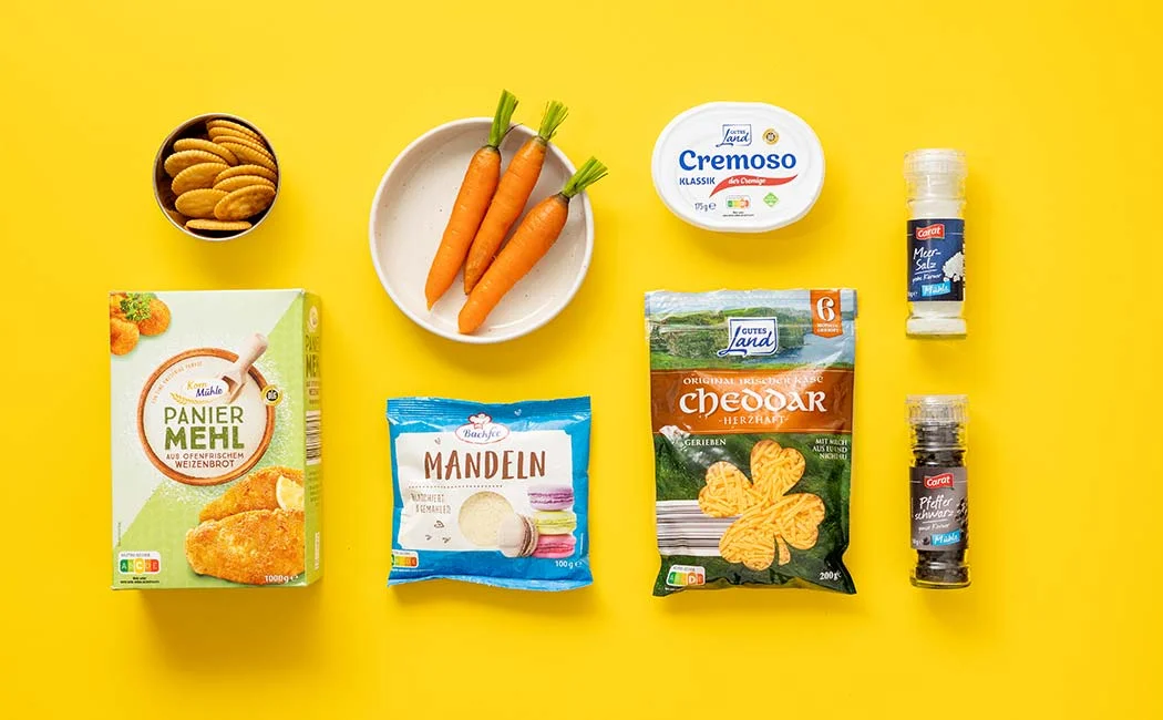 Frischkäse glattrühren. Mandeln und Semmelbrösel einarbeiten, mit Salz und Pfeffer würzen. 15 Minuten quellen lassen.