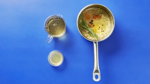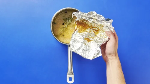 Die Bratflüssigkeit aus der Folie in die Sauce geben und aufkochen. Abschmecken und nach Belieben mit Speisestärke sämig binden. Die Sauce zum Fleisch servieren.