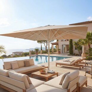 Gastronomie-Luxus-Sonnenschirm MCW-D20b, XXL-Schirm Marktschirm, 5x5m (Ø7,2m) Polyester/Alu 87kg ~ beige ab 1.898.99* ab 1898,99€ Sternchen Fußnote, Details am Seitenende Zum Artikel