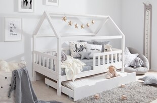 TiCAA Kinderbett Hausbett Montessori Kay 90x200, 100x200 cm, 120x200 cm, 140x200 für Jungen & Mädchen mit Schubladen, Rausfallschutz & Rolllattenrost - aus Kiefer Massivholz für Kinderzimmer -40 % Sie Sparen 40 Prozent, UVP 839.90 UVP : 839,90€ ab 501.51* ab 501,51€ Sternchen Fußnote, Details am Seitenende Zum Artikel