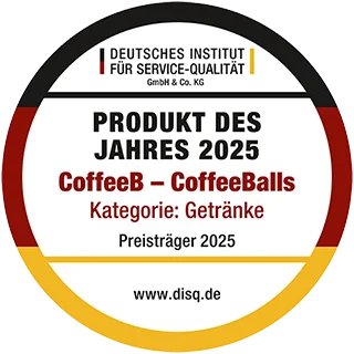 Das Deutsche Institut für Service-Qualität (DISQ) zeichnet jährlich herausragende Produkte aus, die durch Qualität, Innovation und Kundenzufriedenheit überzeugen. Für das Jahr 2025 wurde CoffeeB in der Kategorie Getränke als Produkt des Jahres ausgezeichnet.