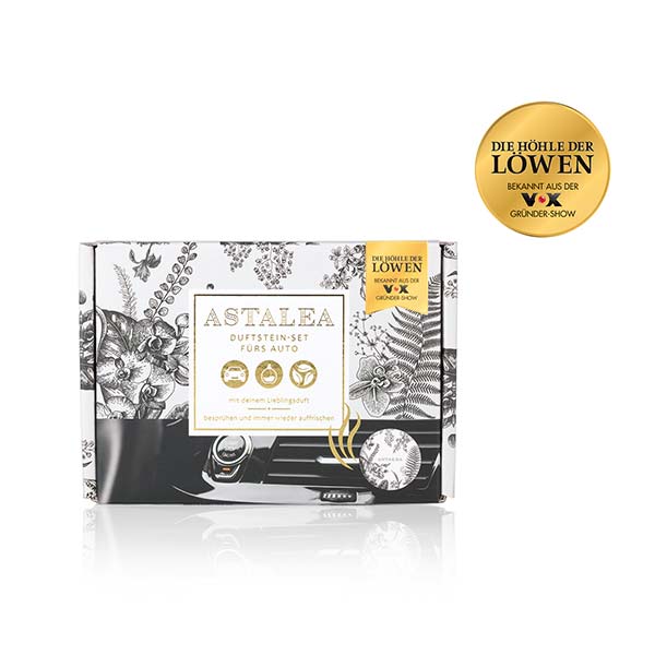 Maxhütte-Haidhof, im September 2021. Der perfekte Deal: In der erfolgreichen Gründershow „Die Höhle der Löwen“ (DHDL) auf VOX konnte die Gründerin Kim Lohmar Investor Ralf Dümmel in der TV-Ausstrahlung am Montag von ihrer Produktneuheit überzeugen. Das ASTALEA Duftstein Set fürs Auto ist ab sofort im Netto Online-Shop (https://www.netto-online.de/p-2231190000) sowie in vielen der 4.260 Netto-Filialen* bundesweit erhältlich.
