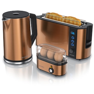 Arendo Frühstücksset, Wasserkocher 1,5l, 2-Scheiben Toaster Langschlitz, 3er Eierkocher, Kupfer -36 % Sie Sparen 36 Prozent, UVP 189.99 UVP : 189,99€ 119.95* Aktueller Preis: 119,95€ Sternchen Fußnote, Details am Seitenende In den Warenkorb