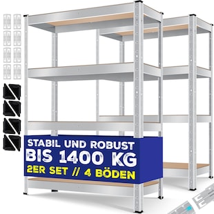Juskys Lagerregal Easy 2er Set – Metall Schwerlastregal 160x80x40 cm, 8 Böden, 640 kg, verzinkt Kundenbewertung: 4,35 von 5 Sternen ab 42.99* ab 42,99€ Sternchen Fußnote, Details am Seitenende Zum Artikel